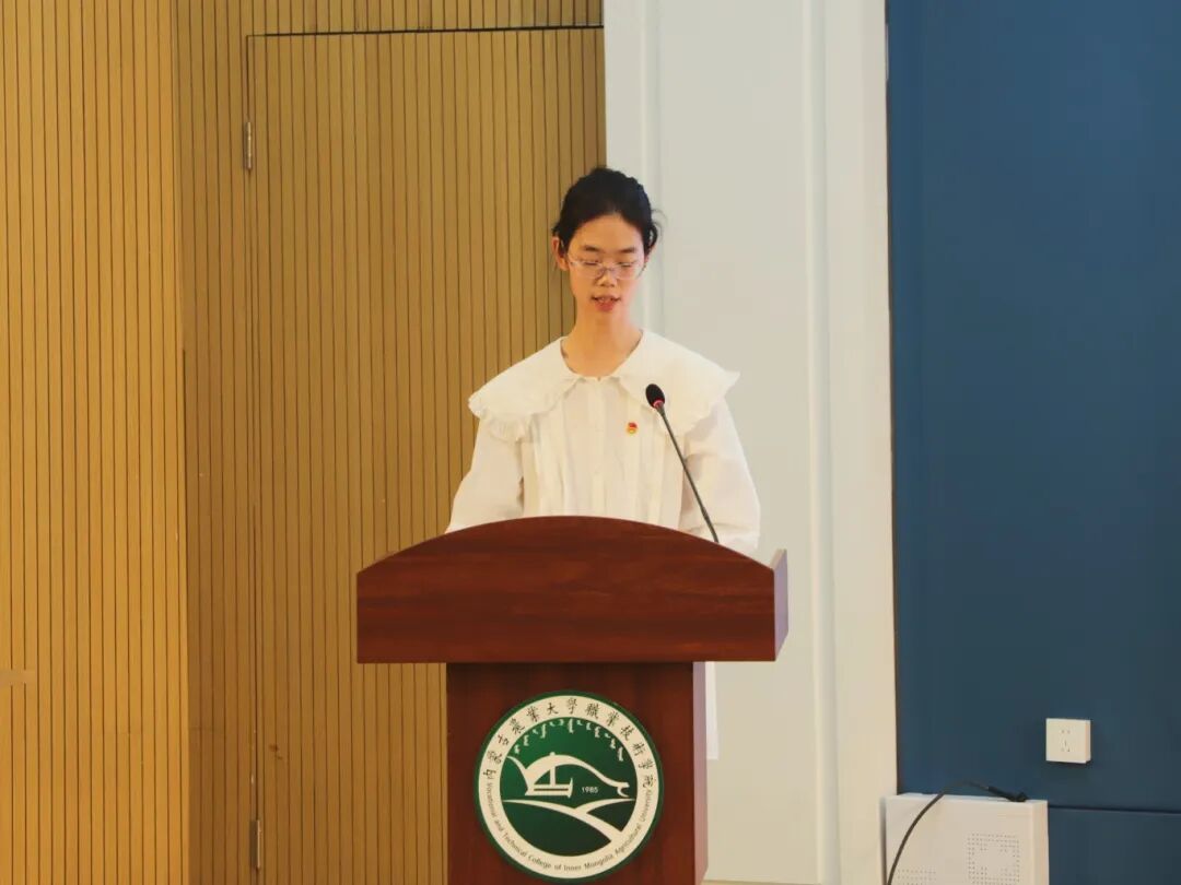 2025级石榴籽班成员、计算机技术系杨笑霖同学发言。她向在场同学发出倡议,一是在思政课堂、各类讲座中筑牢信念,厚植政治底色;二是在实践锻炼中发挥作用,强化责任担当;三是在知行合一中躬身力行,促进交往交流交融,一道努力为班级建设发力。
