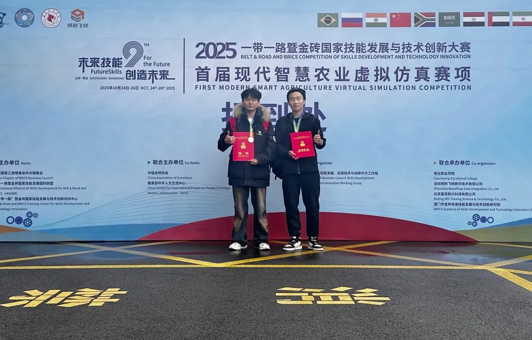 10月26日,“一带一路”暨金砖国家技能发展与技术创新大赛首届现代智慧农业虚拟仿真赛项全国决赛在山东枣庄职业学院举行,400余名技能选手“云端”对决。我院计算机技术系闫凤、辛春花老师带领的宋海冬、赵勇团队荣获本科组全国三等奖。这一成绩不仅展现了学院在农业数字化领域的教学成果,更彰显了职教学生以技术赋能乡村振兴的实践能力。