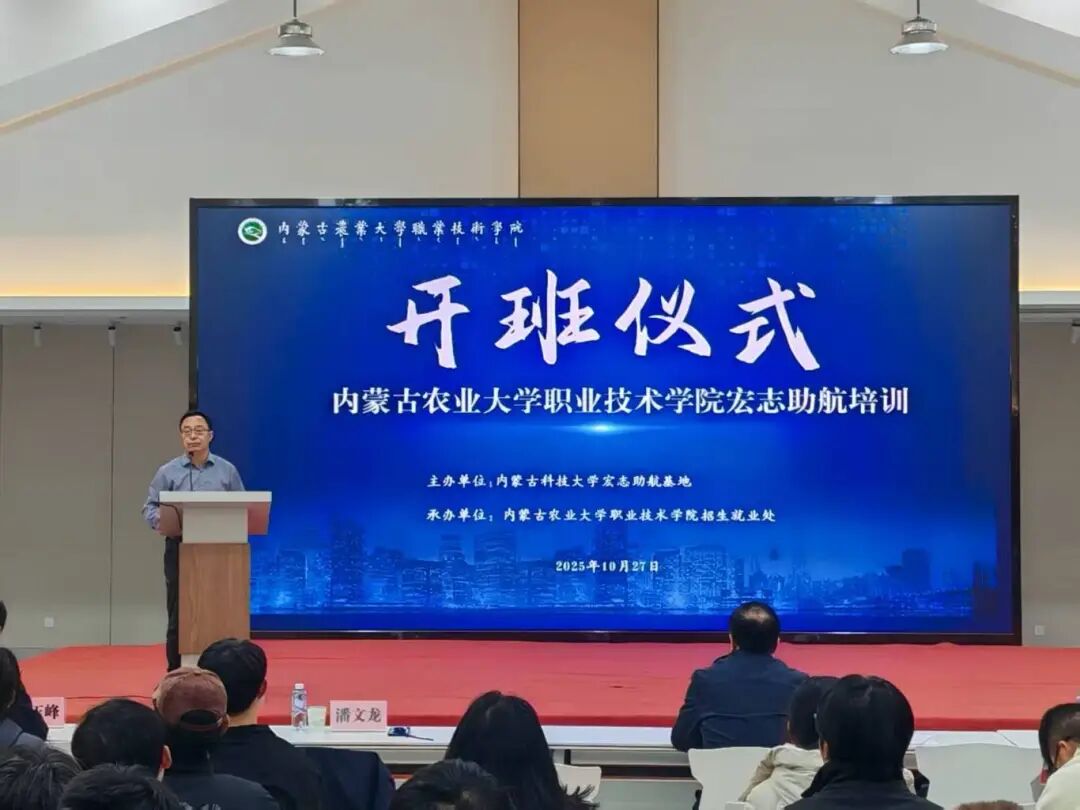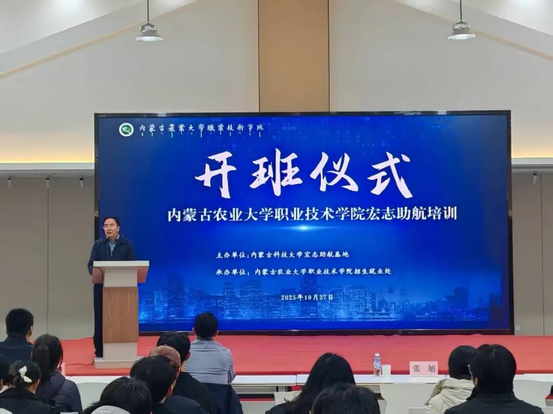 内蒙古科技大学招生就业处副处长潘文龙在致辞中指出:“宏志助航计划是国家稳就业、促民生的重要举措,本次培训由内蒙古科技大学与内蒙古农业大学职业技术学院联合发力,整合双方优质资源打造精准化就业帮扶体系,必将为学子职场启航注入强劲动力。”