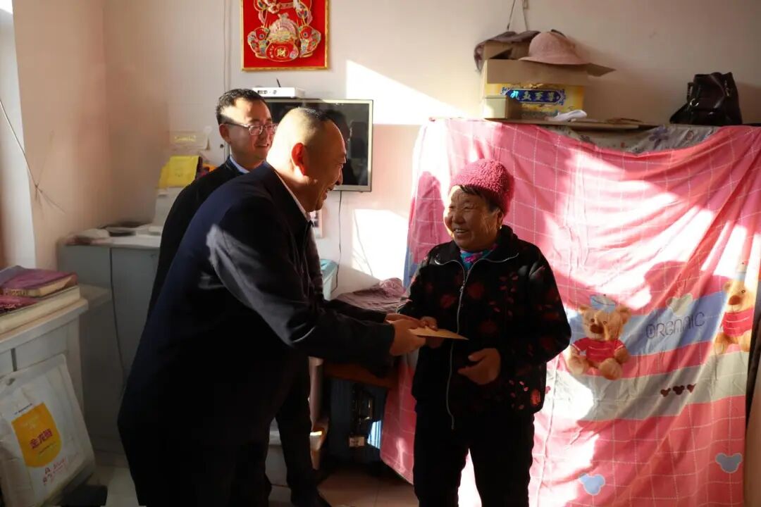 11月6日上午,陆海平一行深入阿力得尔苏木翁胡拉嘎查及驻村工作队宿舍实地走访。在驻村工作队宿舍与驻村干部亲切交谈,详细了解他们的工作、生活情况,并对他们在乡村振兴一线的辛勤付出表示慰问和肯定。随后在翁胡拉嘎查牧民家中,实地调研产业发展与生态建设现状,倾听群众对科技帮扶、教育支持的实际需求并送上慰问物资及慰问金。陆海平表示,内蒙古农业大学将持续发挥学科优势,精准对接地方发展所需,让科研成果真正惠及草原人民。