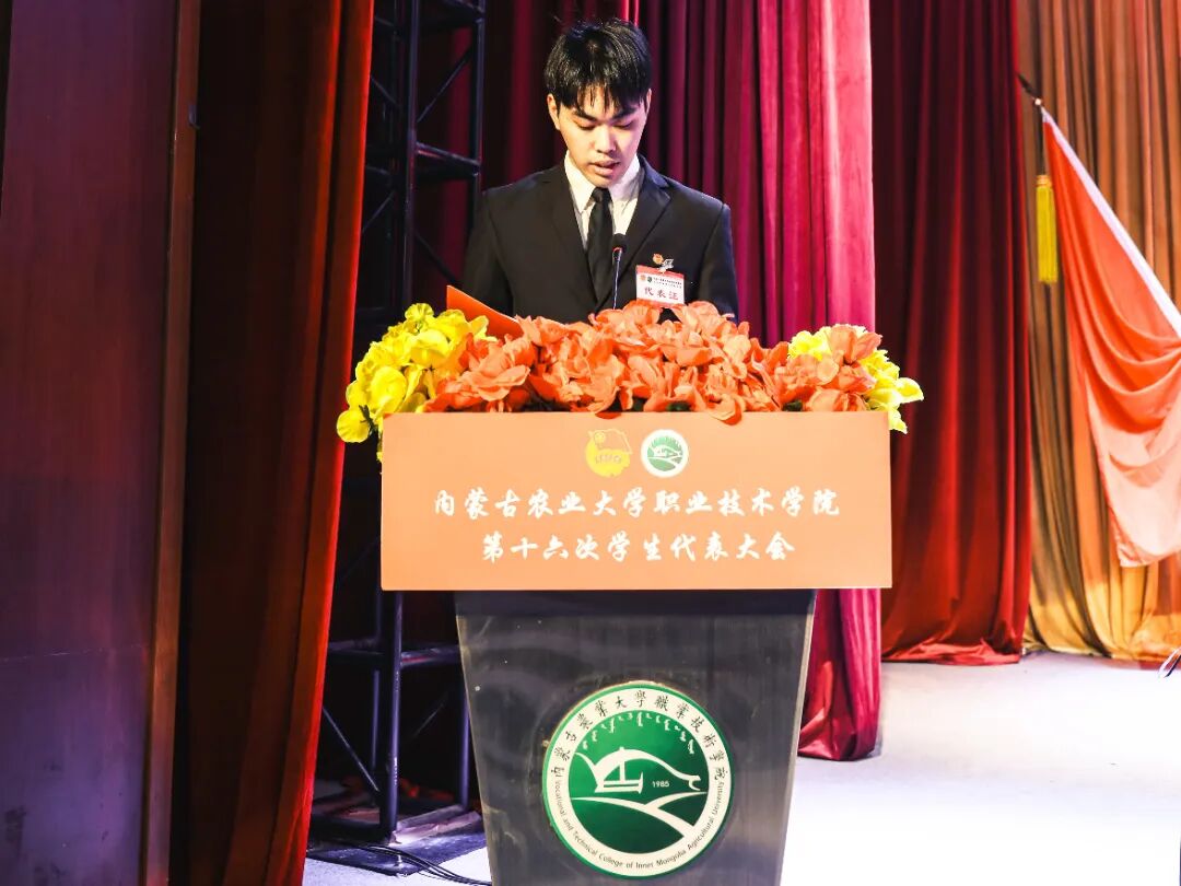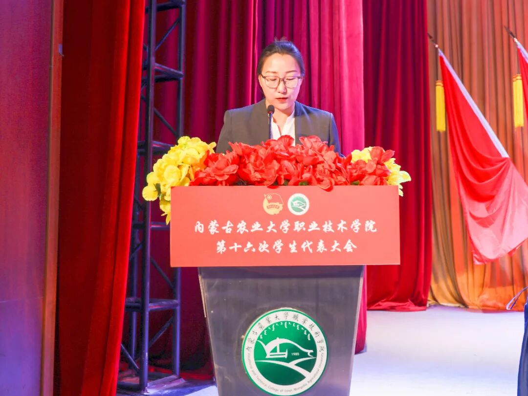 海日罕代表学校团委向大会的召开表示热烈祝贺,她肯定了学院学生会在提升同学满意度、大局贡献度和社会认可度方面取得的一系列丰硕成果。号召全院团员青年要在校党委的正确领导下,努力成长为立大志、明大德、成大才、担大任的知农爱农人才,为中国式现代化内蒙古新实践贡献青春力量。