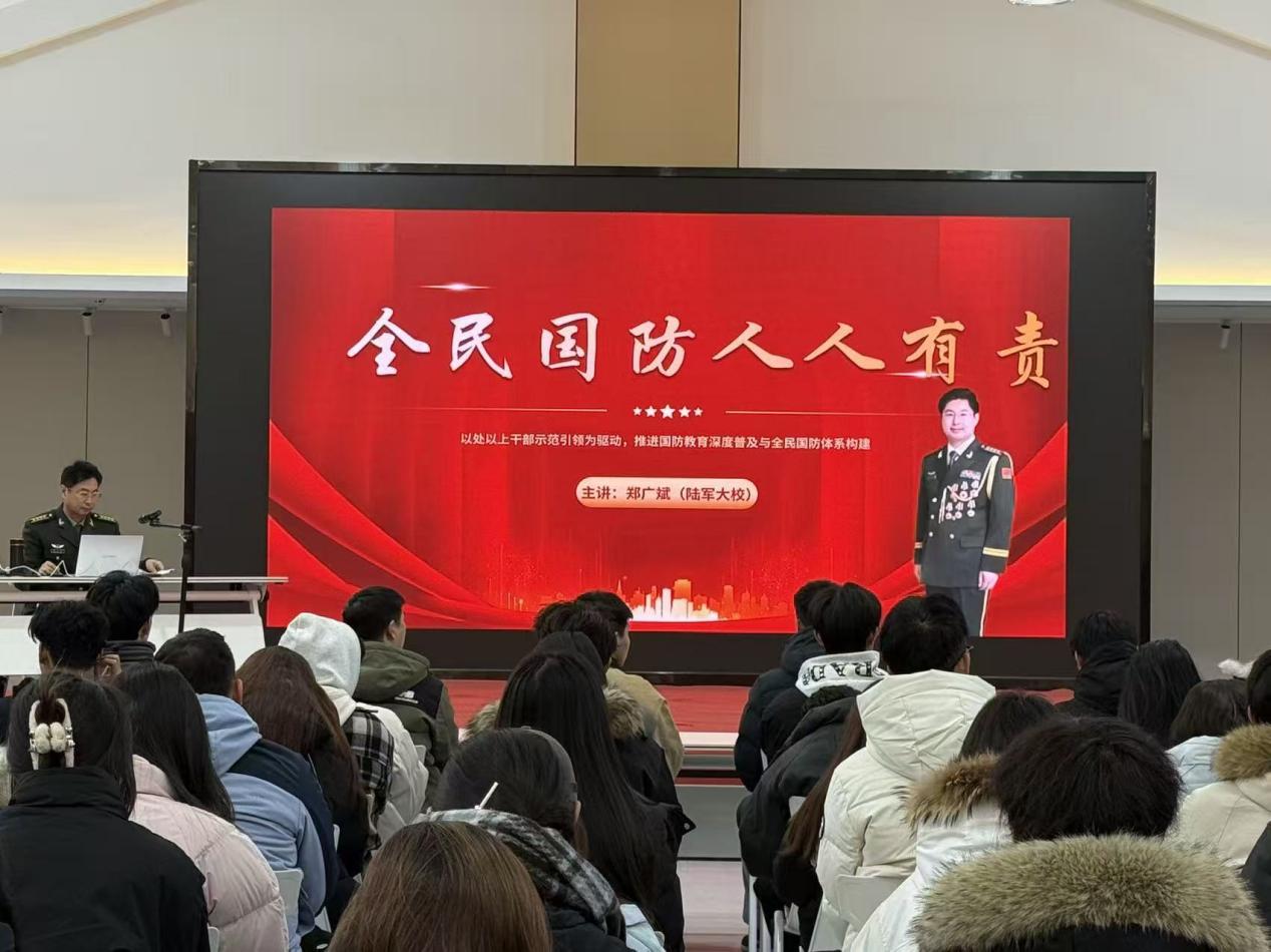 讲座中,他从“心”出发,强调国防教育在铸魂育人中的根本作用;以“动”为纲,阐释全民参与国防动员的实践路径;以“新”为刃,生动解析科技强军的战略举措。结合当前国际形势与国家安全环境,郑广斌通过珍贵影像资料与真实感人的故事,深入浅出地讲解了我国国防现代化建设取得的辉煌成就,深刻诠释了全民国防的时代价值与精神内核。