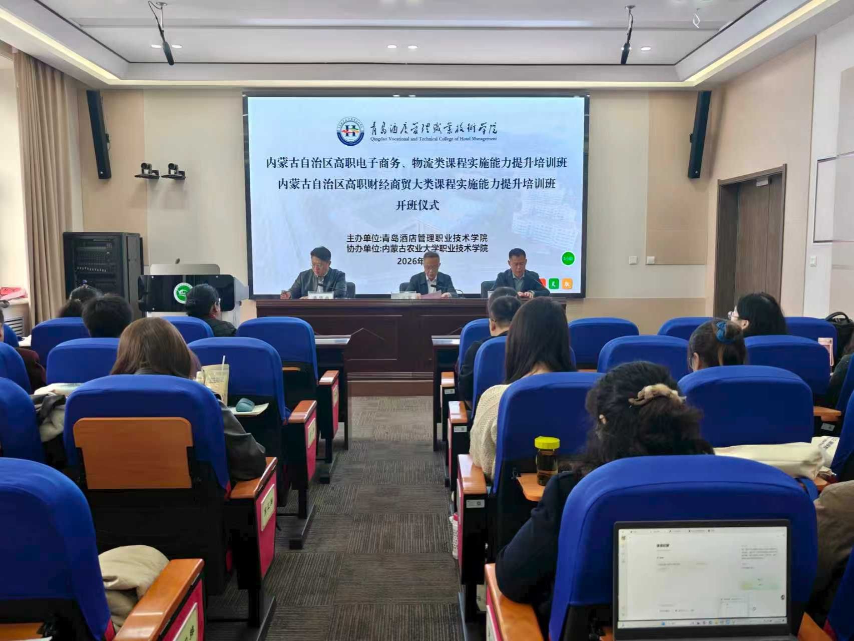 3月17日上午,由内蒙古自治区教育厅主办、青岛酒店管理职业技术学院承办、我院协办的“内蒙古自治区2025年职业院校教师素质提高计划——高职电子商务、物流类课程实施能力提升培训班”及“高职财经商贸大类课程实施能力提升培训班”开班仪式顺利举行,学院继续教育学院(交流合作中心)、青岛酒店管理职业技术学院相关负责人及全体学员参加。