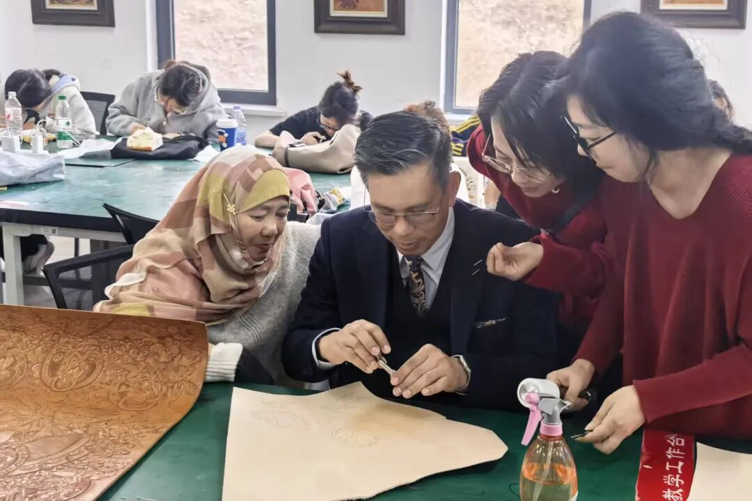 会后,艾哈迈德·哈塔·拉希特教授一行先后前往车辆工程技术系实训基地、建筑工程技术系实训基地、中国·敕勒川现代农业博览园、食品工程技术系实训基地实地参观,详细了解各实训基地建设运营、教学实践开展及学生技能培养等情况,并与在场学生亲切交流互动。同时,艾哈迈德·哈塔·拉希特教授一行来到艺术设计系皮具工坊,在学院专业教师的指导下亲手体验皮具制作流程,感受传统手工艺与现代设计教学相融合的独特魅力。
