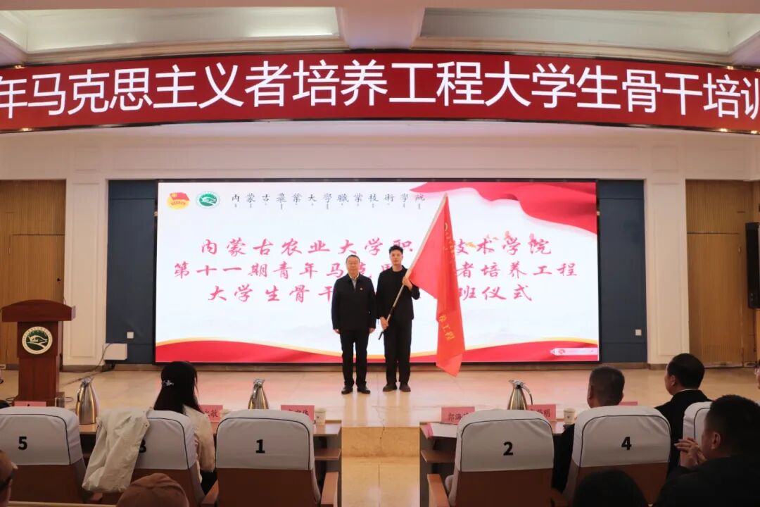 郭海清为第十一期青年马克思主义者培养工程大学生骨干培训班授旗。